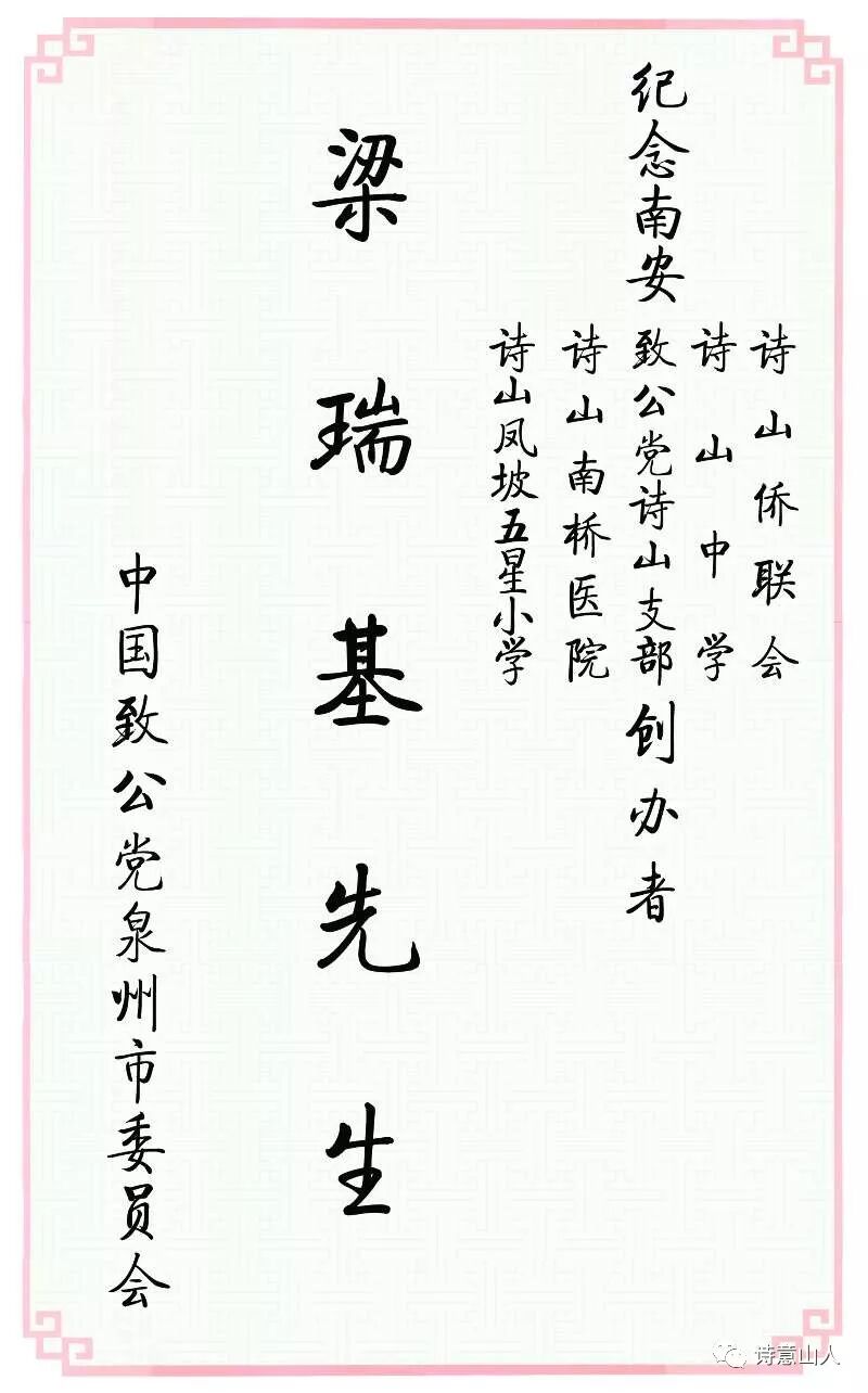 “诗山俊彦,侨界贤才。”